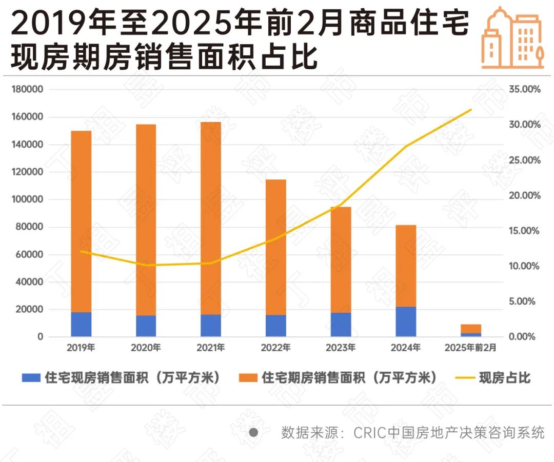 资料显示,截至2025年2月,全国现房销售额达到32.16%,比2024年全年26.97%高5.19%,是近十年来的最高点。