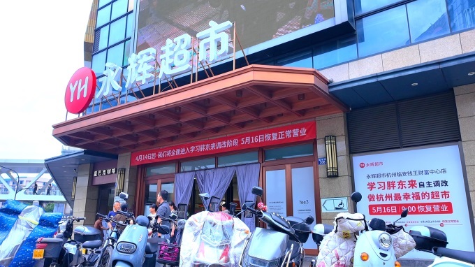 五月十六日,永辉超市学习胖东来,临安区第一家店——钱王财富中心店重新开业。