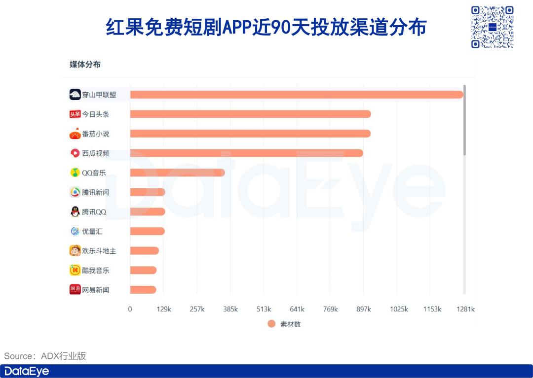 一种现象可以证明:ADX行业版数据显示,近90天来,红果短剧APP投流最大的媒体是字节旗下的穿山甲联盟,材料占比高达54.99%,但其在抖音平台上的材料占比仅为0.84%,还不到1%,这也意味着红果在统计期内基本上没有在抖音平台上做广告。