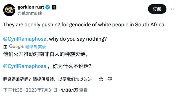 近年来,马斯克多次发表文章称,他相信有杀害南非白人的阴谋。尤其是去年底深入政治后,他越来越激进地讨论了这个话题。他甚至直接问他为什么不回应南非白人种族灭绝的问题,从X上@南非总统。