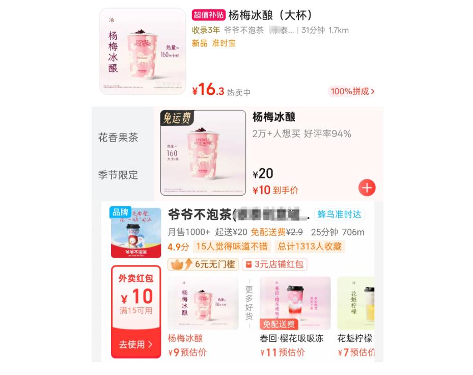 杨睿卿告诉我们,他曾经是拼好饭的忠实用户,但在外卖三国杀的场景中,他也有了更多的选择,购买和拼好饭的次数也比以前大大减少了。“有些菜比其他平台更贵,尤其是奶茶和咖啡,JD.COM淘宝更便宜。”杨睿卿还当场向我们展示了三家外卖平台同一饮料的价格。