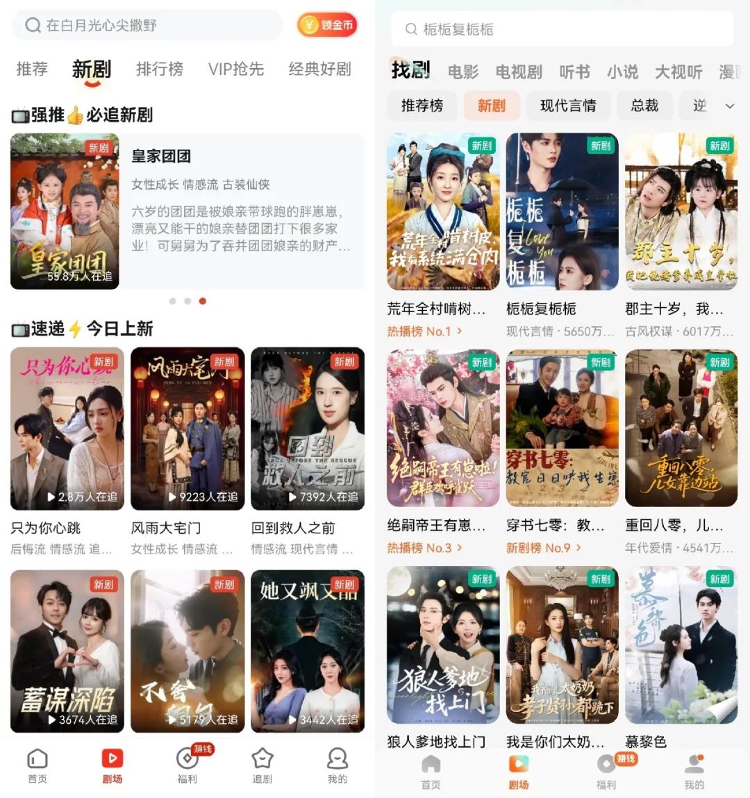 红果短剧已经推出了15000多部短剧,每个月都保持了上千部短剧的新速度,内容供应充足多样。相比之下,河马剧院虽然有一些高质量的版权资源作为IP基础,但在内容数量和更新速度上仍有明显差距。