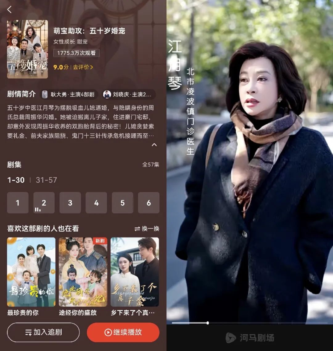 另外一边的河马剧院,最近引起的话题仅在于刘晓庆主演的短剧《萌宝助攻:五十岁婚宠》,没有绝对的爆款让大众无法进一步记住河马剧场的存在。