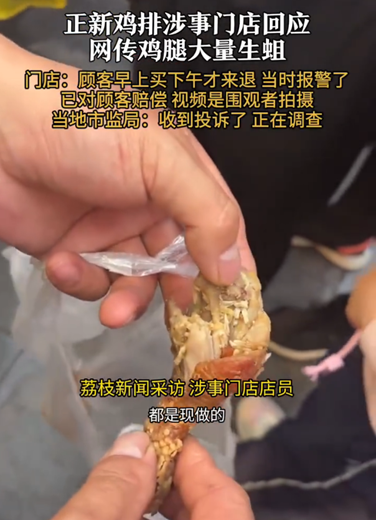 “这真的很恶心,不到半天。这是很久以前的事了吗?”在#网友爆料正新鸡排鸡腿大量蛆#的微博热搜下,有网友愤怒地评论。
