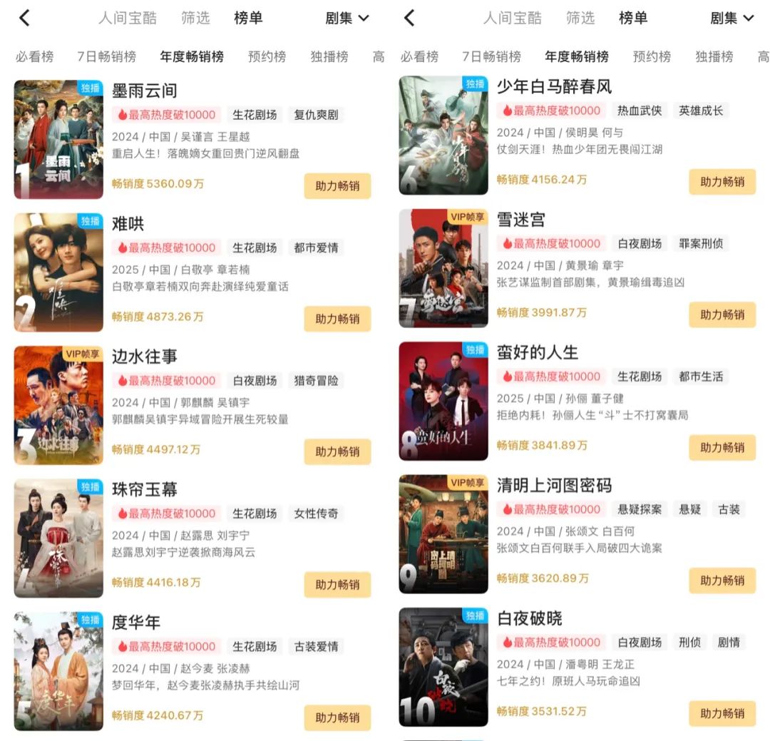 推出“年度畅销榜”,不仅是优酷对一年来剧集成绩的集中展示,也再一次吸引了剧粉、明星粉丝的目光。在过去的两天里,入选名单的电视剧《胫骨》已经证实了播出结果,以及他们自己的爱豆抗剧能力。。假如考虑到优酷刚刚正式公布了2025年的内容片单,在这个时候推出“拉新榜”就更不一样了。