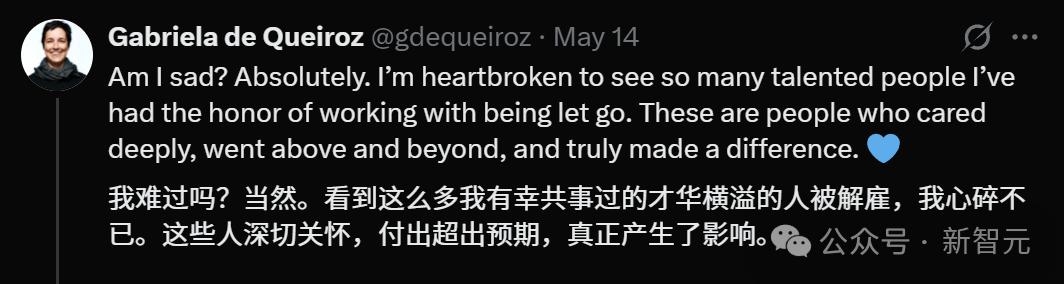 甚至,为创业公司服务的AI总监Gabriela de Queiroz被裁掉了。她晒出一张站在那里的照片。「Microsoft for Startups」背景墙前的照片,坦言自己心情复杂。