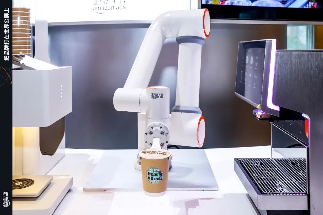 “世界品牌公屏”舱内,机械臂正忙着为现场的品牌主制作一杯又一杯定制logo的拉花咖啡。只要在现场上传自己的产品logo,就可以实现“隔空投屏”。这一温暖的小互动不仅仅是现场参与者的能量供应站,更重要的是向他们展示亚马逊广告的世界公共屏幕能力。亚马逊广告旗下的多媒体矩阵(Prime Video,Fire TV, Twitch等。)覆盖了全球客户的不同接触点。只有Prime Video的全球广告平均每个月可以接触超过2亿客户。