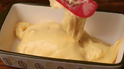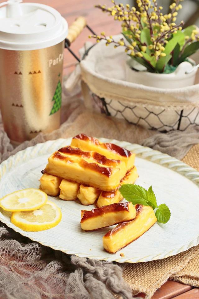 前面的流程操作和牛奶小方和炒鲜奶很像。习惯了的朋友一定很熟悉,很上手。只是做烤鲜奶,不需要包椰奶、面包屑、油炸等等。