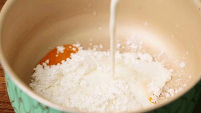 1. 将鸡蛋中的蛋黄分离出来,放入奶锅中,然后倒入玉米淀粉和纯牛奶,决定是否根据自己的口味和爱好添加糖,将锅中的食材搅拌均匀。