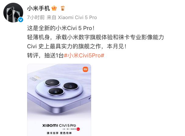 在过去的两天里,小米正式宣布将在 5 自研手机月底发布 SoC 芯片 " 玄戒 O1 " 、小米 Civi5 Pro 等新品。