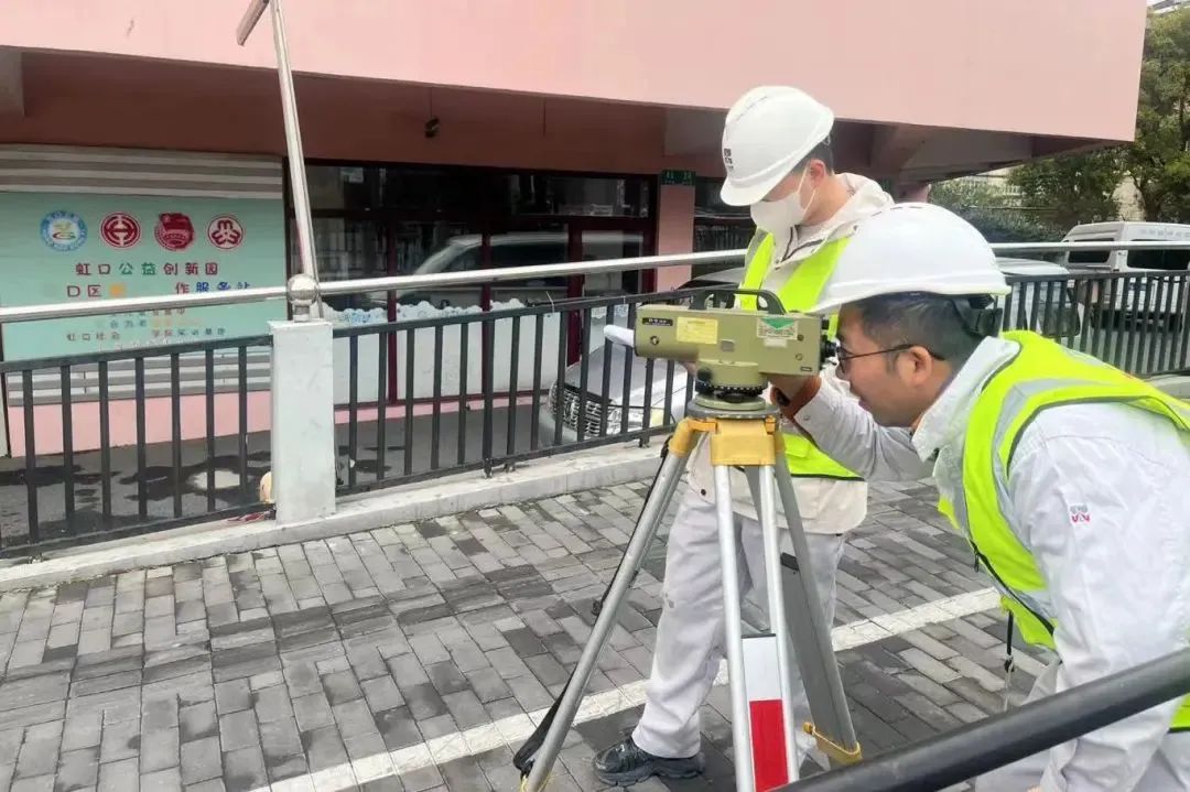 虹口区建设管理委员会在收到居民反映的问题后,立即启动了“吹哨报到”机制。联合房管局、当地街道、市政养护公司进行现场调查,安排第三方检测机构对小区出入口进行高程测量,充分了解现场情况。