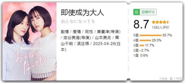 《即使是成年人》由栗山千明和山本美月主演,豆瓣8.7 分,在小众跑道上口碑不错。