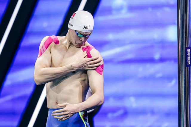 对于年近 34 对于“大龄”的孙杨来说,“为自己游泳”不就是当下的心情和追求。即使最高领奖台难以企及,他的肩膀也因为积水而被贴上了长长的肌肉贴纸。他还是选择跳进游泳池,和比我们年轻一轮多的年轻一代一起努力。
