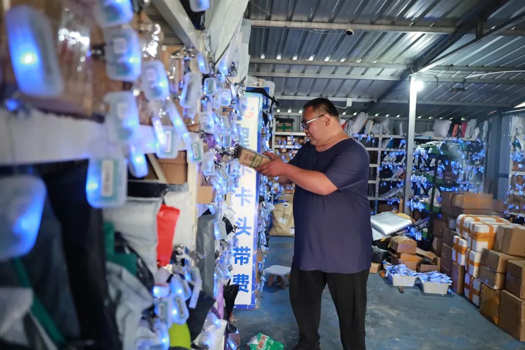 在安泰水晶城“日畅快乐”助残云邮递站,负责人祝朋伟正在整理快递货架。自更新快递收发设备以来,他的工作效率大大提高。目前,邮政栈每天接收2500多件物品,还经营社区团购、玩具销售、电信等服务,年收入约20万元。