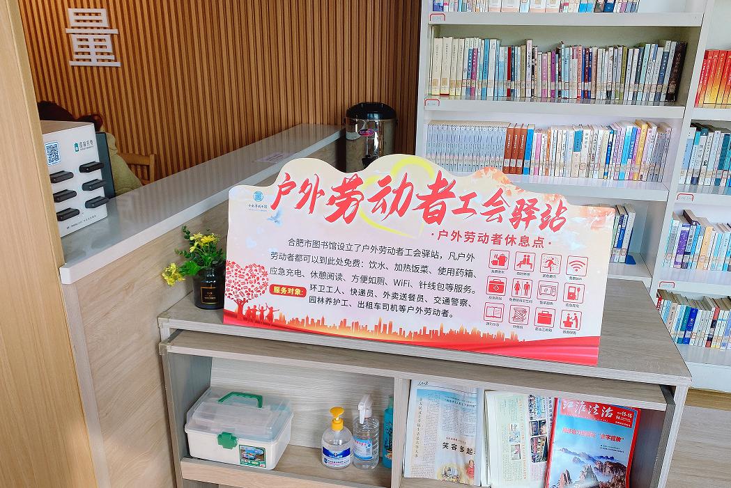户外劳动者服务站工会驿站(图书馆站)依托合肥市图书馆24H月书房,也是户外劳动者的温暖港湾。这里环境安静温馨,图书资源丰富,可以为休息的员工提供图书借阅服务。读书分享会等文艺活动也让大家在业余时间沉浸在诗歌中。