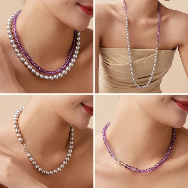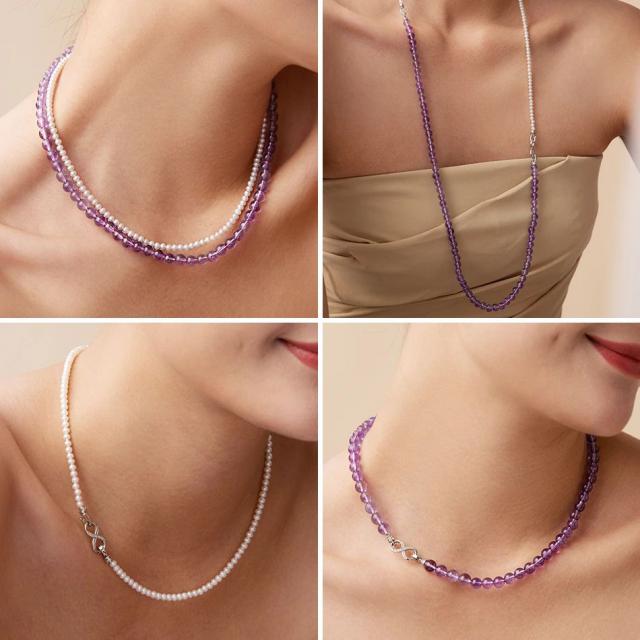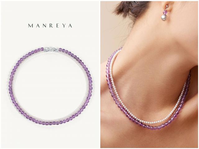 设计师将 3-4mm 淡水珍珠和 6-7mm 大小紫水晶相结合,设计师秉承极简主义,打造专属您的全能装饰品。