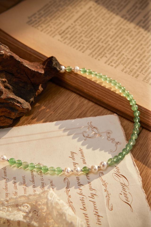 珠光运转,尽藏春天的秘密。绿色的草莓晶体透露出朦胧的绿色,闪耀着温柔的星光;