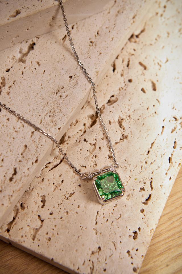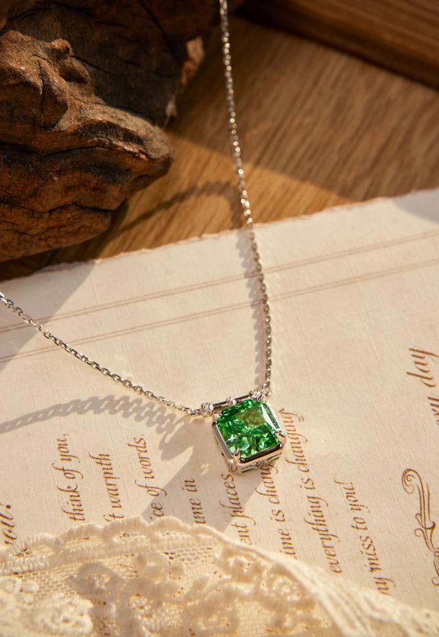 绿色合成钻石可以在荒野中展现浩瀚的宇宙,与银链完美融合,带你去花丛中,看着时间变成珍珠,点亮你温柔的张力。