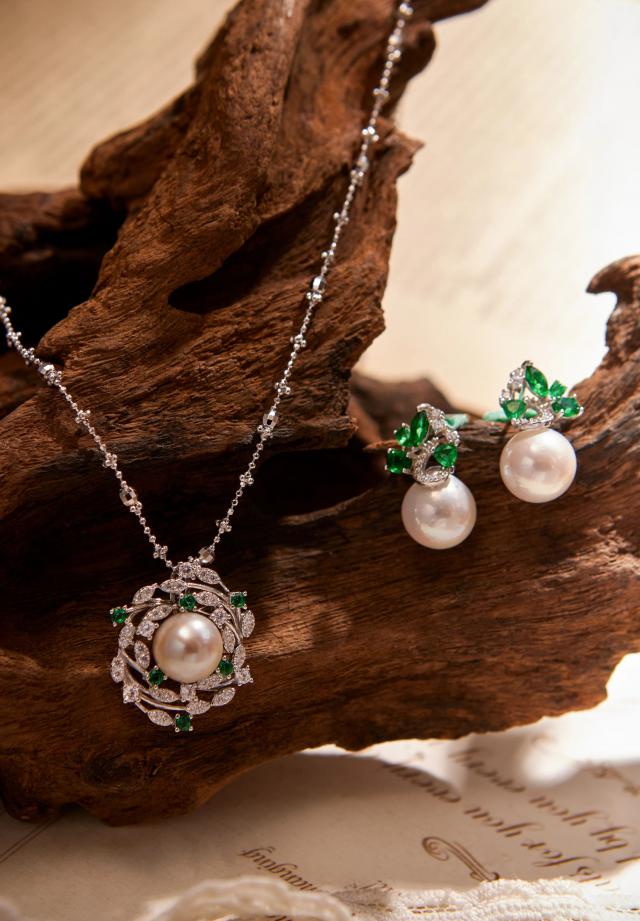 风格四、“森遇极光”珍珠颈链 耳饰套装