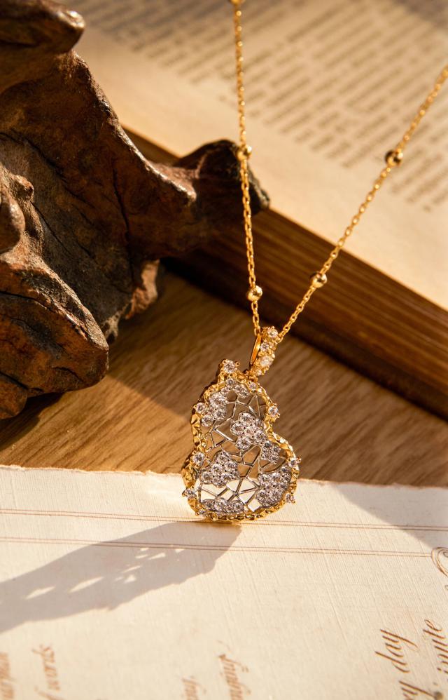 这个颈链有葫芦藏福,钻光增光的美好寓意。