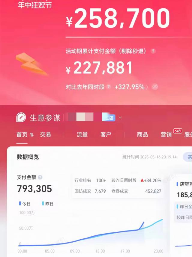 一家来自工厂的新中式商家,今年刚刚入淘开店。 618 在大促销和消费券的加持下,开售 18 分钟销售额破裂 1 万、2 小时冲到 5 万,预计将突破历史单日销售高峰,商家表示“淘宝现在已成为我们的主要平台”。