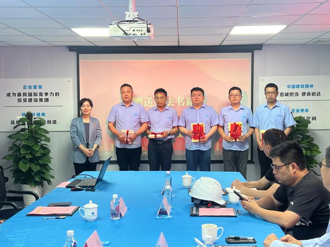 现场,领导共同为项目服务 “尚廉” 揭牌中建文化试点,并向项目建设者代表赠送一系列普法书籍,有助于提高一线人员的法治素养。