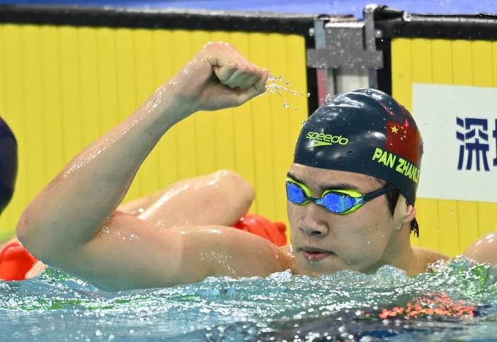 当时,潘展乐可以在每场比赛中拉下对手的几个位置。当记者问他要拿几枚金牌时,他说:“我想拿任何东西”!把孙杨当成偶像,他谈到了未来的目标,说:“比孙杨还快。”。