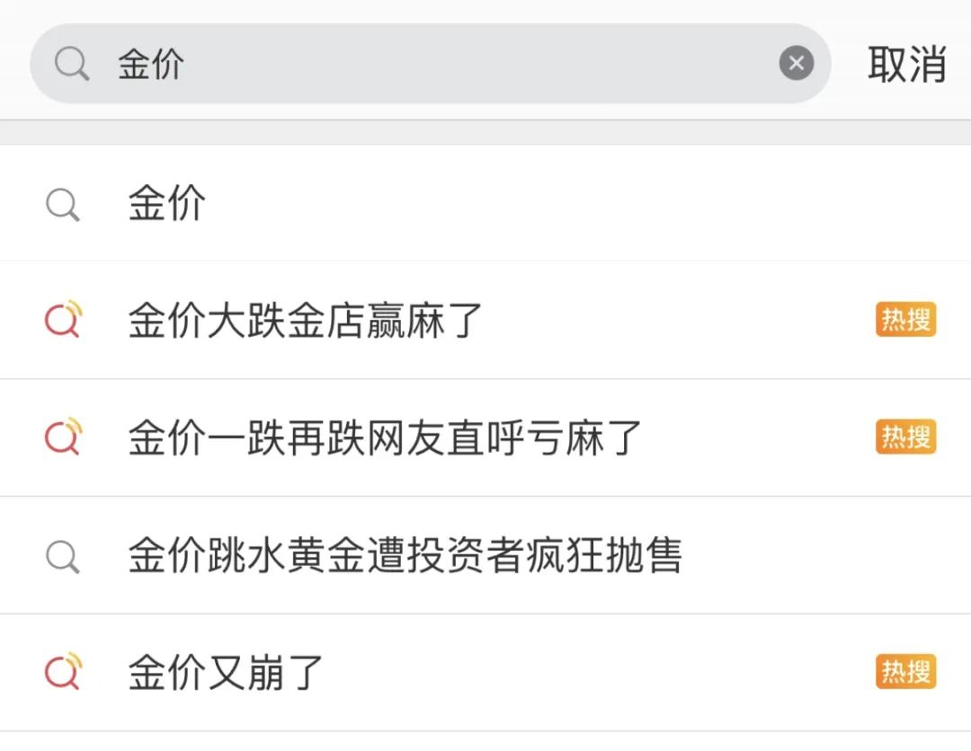 最近,金价下跌相关内容频繁出现在网络平台热搜上。