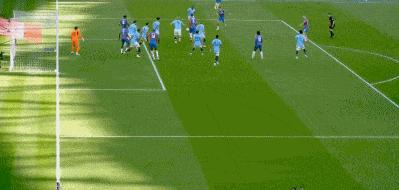 第 14 几分钟后,曼城右边的角球再次被罚到门口,阿坎吉头球后蹭,足球略高于横梁。