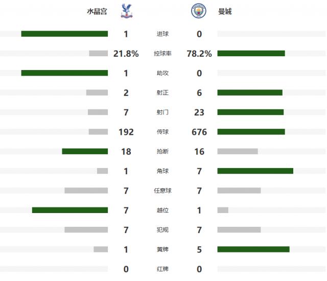 第 16 几分钟后,水晶宫反击,马特塔在中路右侧进球,穆尼奥斯在高速前插入禁区右侧,然后横传雷区中路。埃泽成功抢到了进攻点,水晶宫。 1-0 曼城。