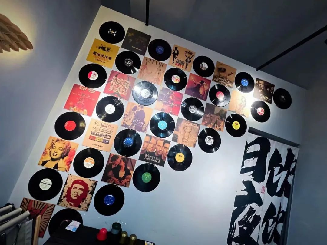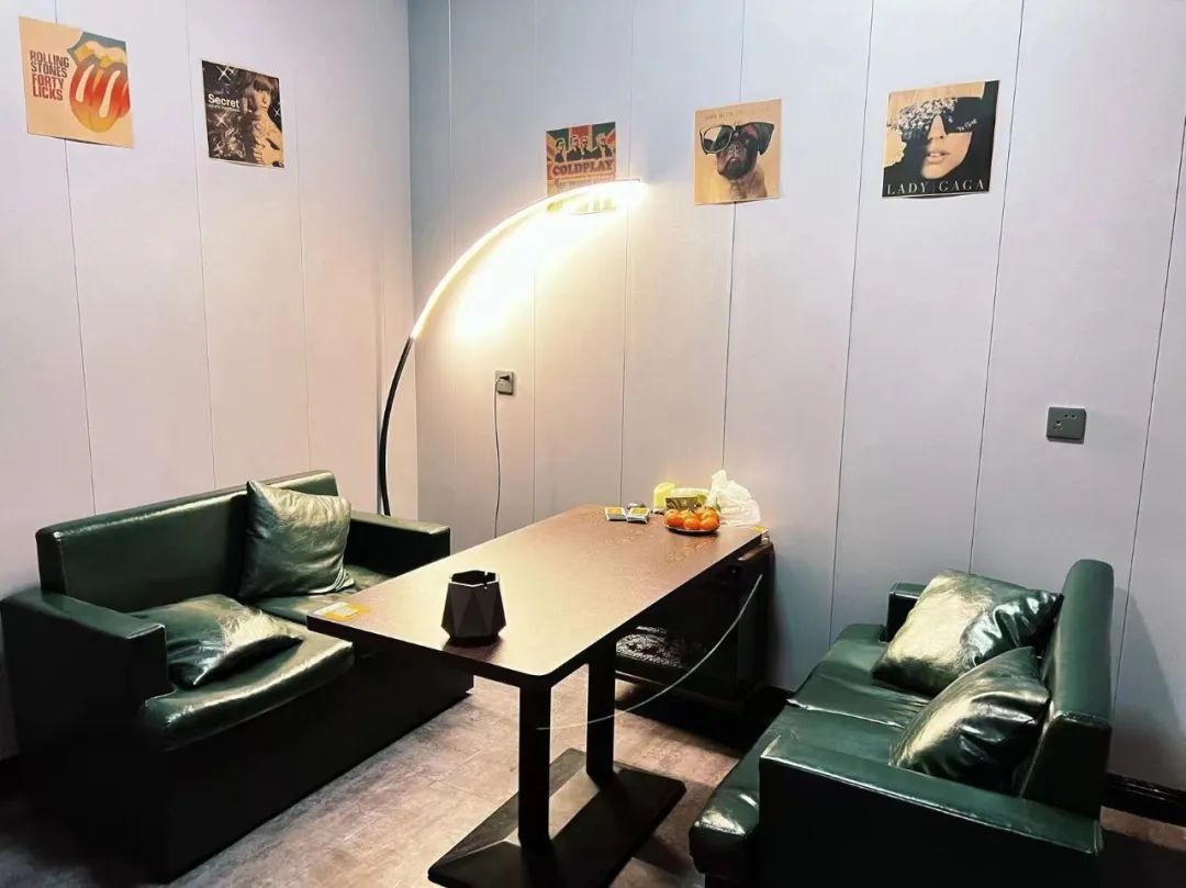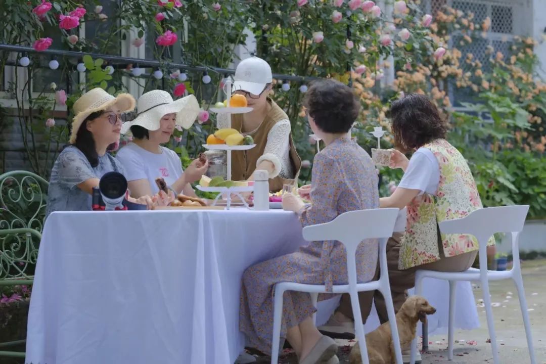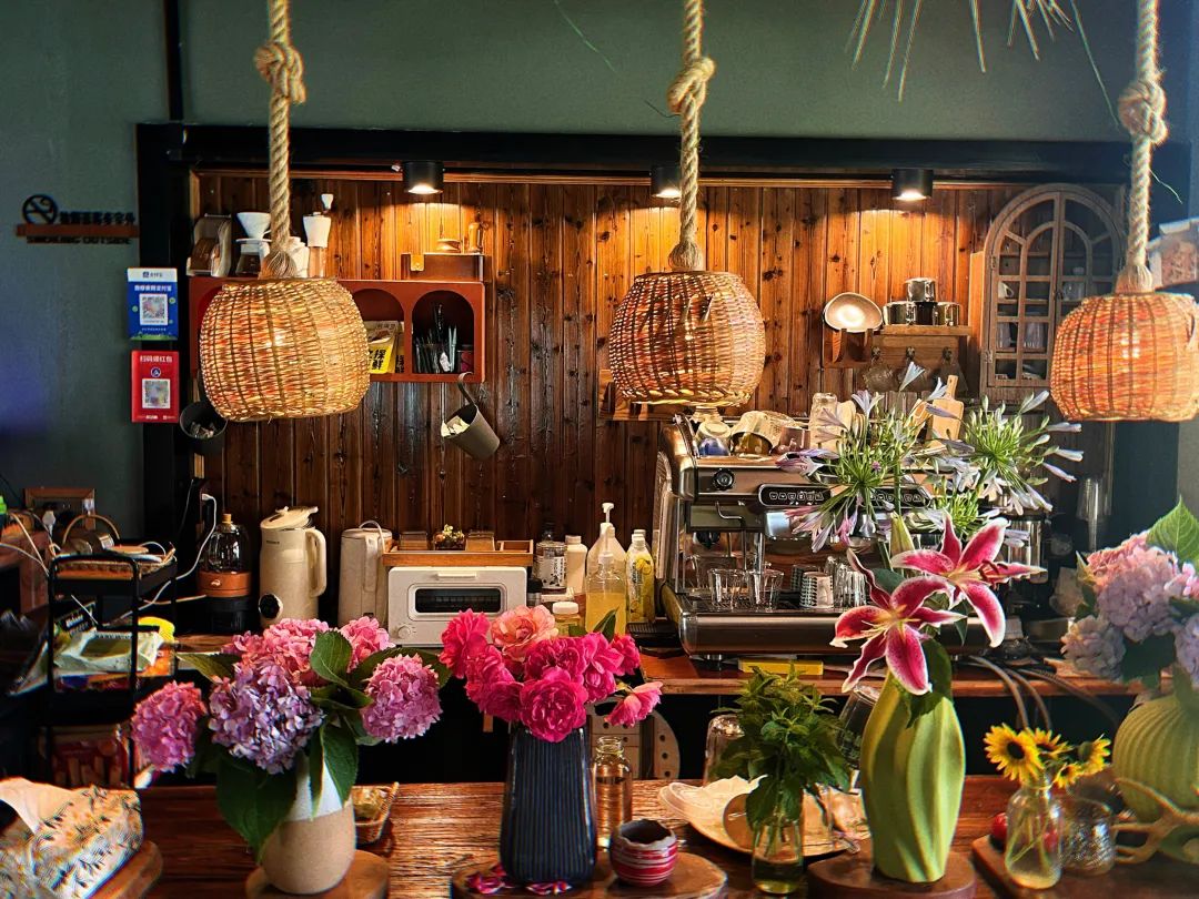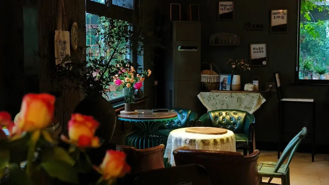 木制或水泥砖制成的小桌子和露营风格的椅子