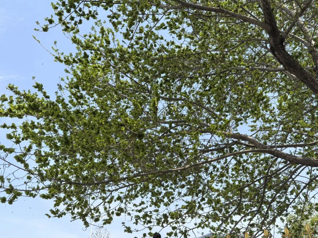 “有一个花园”位于院东护栏外,宽2.5米,南北长55米,占地约140平方米。它是一个典型的口袋花园。花园里有十几棵野生老榆树,靠近院东护栏。现在是枝繁叶茂的时候了。风一吹,榆树的钱就撒在院子里,形成一片绿色的波浪,就像浮萍漂浮在平静的水面上。