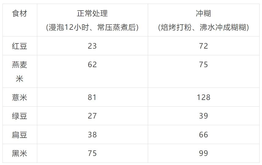 在吃法上,很多人喜欢把粗粮打成粉,然后用水冲成糊,方便又有营养。但是你可能不知道,粉末的这个环节会导致食材的血糖指数。(GI)上升。