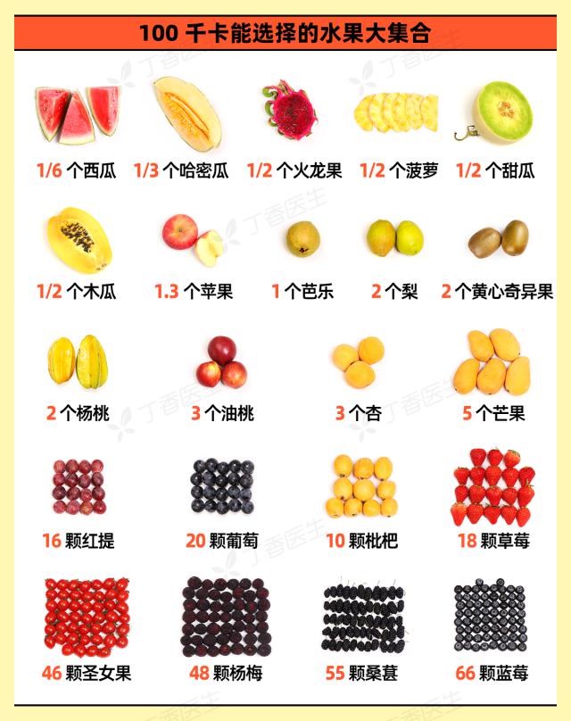 � � 建议每天吃中国居民膳食指南 200~350 上面我们给出的这些水果代表克水果, 100 千卡重量基本在这一范围内。