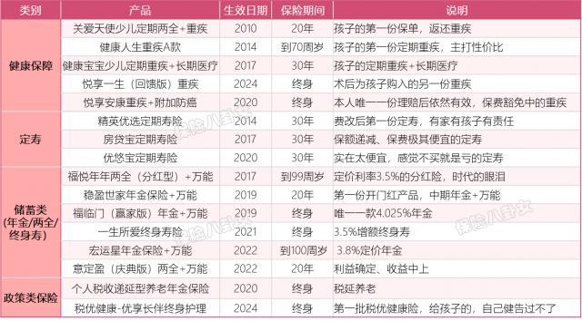最后,附上八卦姐本人和孩子的保单(不包括已经索赔的大病保险和一年期医疗保险以及一些小产品)