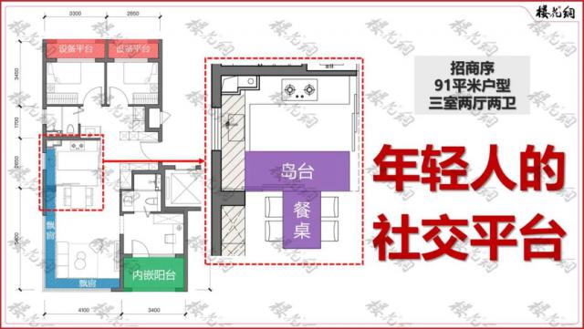 花姐了解到,在开放样板房后,来访客户对招商序评价最高的公寓类型, 91 平两面宽三居室。