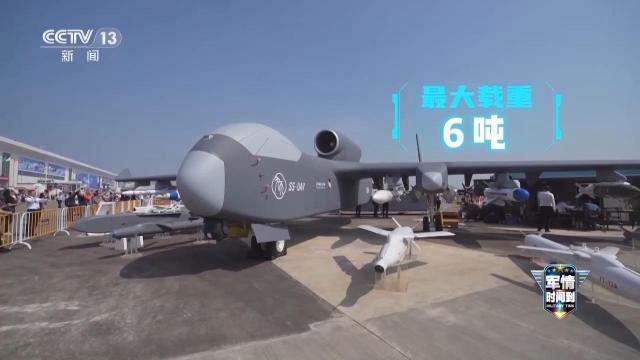 专家:“九天”无人机在战斗时,能够携带多样化的负载。一方面可以配备攻击性武器,比如它有这个挂架,其中四个可以装载一吨的负载,你就像一吨的负载,所以导弹很大。我们可以看到,在中国航展上,这种防区外发射导弹也可以挂载。这类导弹一打就能打上百公里,而且还可以进行隐形突防,特别强大。还可以装载一些小型无人机。当前对地打击负荷基本上可以挂载。而且我们还可以在中国航展上看到它可以装载中距空中导弹。比如说霹雳 -12E。因此,导弹不仅可以自备,还可以对彼此的空中目标进行先敌发射,先敌打击。我认为更重要的是,如果它配备了更先进的电子战斗吊舱,它可以抑制彼此的雷达,影响彼此的雷达,提高自己的生存能力。假设可配备定向红外线影响系统,通过激光束影响对方的红外线制导导弹,可大大提高其生存能力。所以这么高的挂载能力可以挂载多样化的武器。既能提高其突防攻击能力,又能提高其生存能力。