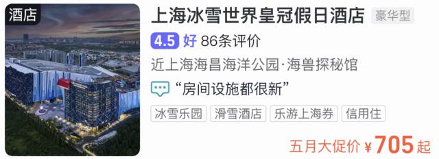 上海冰雪世界皇冠假日高级房屋 1 晚含早 2 世界门票张耀雪水,788 人民币(领取美团券后 738 元)