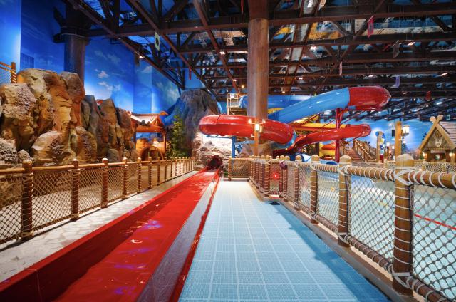 这个巨大的综合体共分为水世界(室内外两层)、雪世界的两个主要区域,其中雪世界又分为娱雪区(玩项目)和滑雪区(滑雪),都是单独出售的。