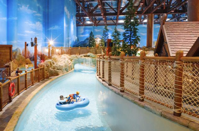 懒人河漂流河道巧妙地模拟了自然河流的漂流体验,让你在室内享受室外的快乐。躺在特殊的漂流艇上,随着河流的流动慢慢前进。