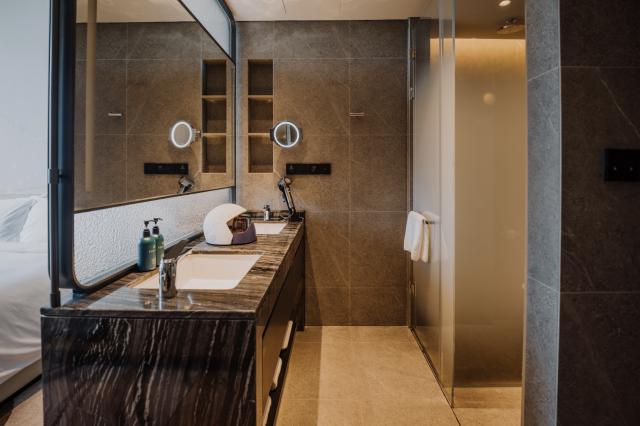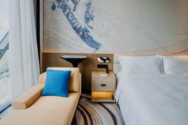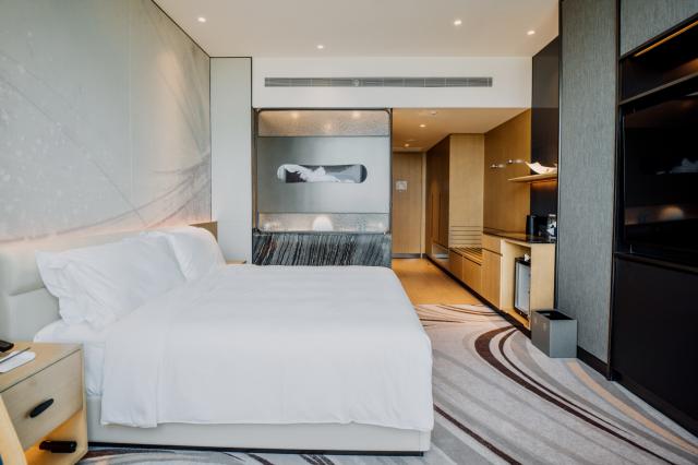 新酒店,硬件会更好。高档房间的面积 32㎡,可以选择大床双床。