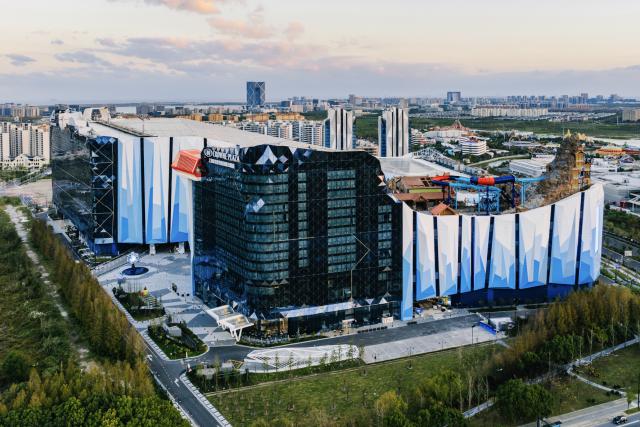 上海临港位于耀雪冰雪世界,所有业态(雪世界) 水世界 所有的酒店都在一栋楼里 25 万平、5 巨无霸型建筑层高。
