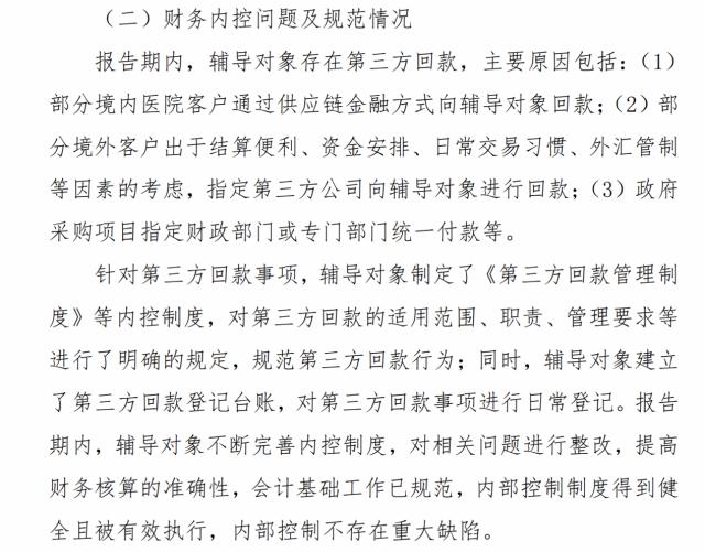 报告指出,康华股权针对第三方支付事项,制定了《第三方支付管理制度》等内部控制制度,明确规定了第三方支付的适用范围、职责和管理规范,规范了第三方支付行为;同时,指导目标建立了第三方支付登记账户,并对第三方支付事项进行日常登记。