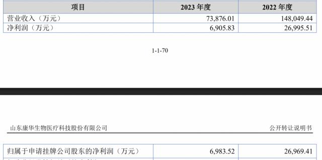 2022 年到 2024 2000年,康华股权营业收入分别为 14.8 亿元、7.39 亿元、7.28 亿元;属于上市公司股东的净利润 2.7 亿元、0.69 亿元、1.25 一亿元;毛利率分别为 55.4%、65.31%、66.68%。