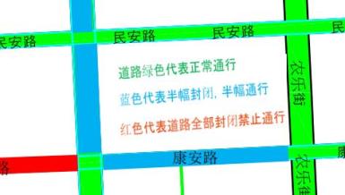 ①在施工过程中,中心街道采取半路封闭措施,车辆可以从东侧预留双车道通行。②民安路段在施工期间采取全封闭措施,禁止车辆通行。③施工期间,富饶胡同采取全封闭措施,禁止车辆通行。富裕社区的居民可以通过西门。住房和城乡建设部门应根据项目进展情况及时更新实时路况。施工期间请关注公路交通实时信息图。
