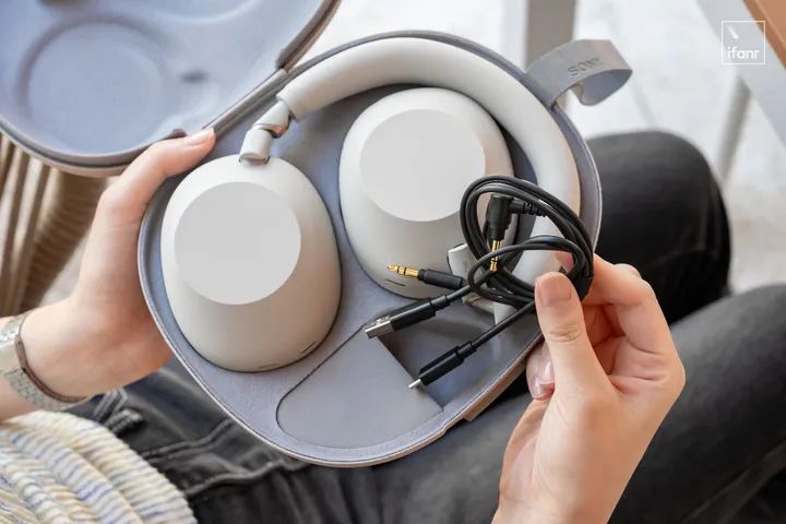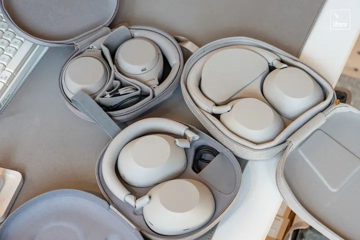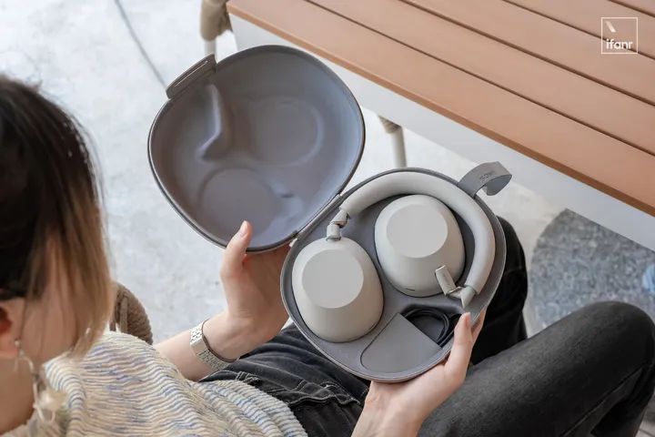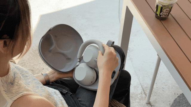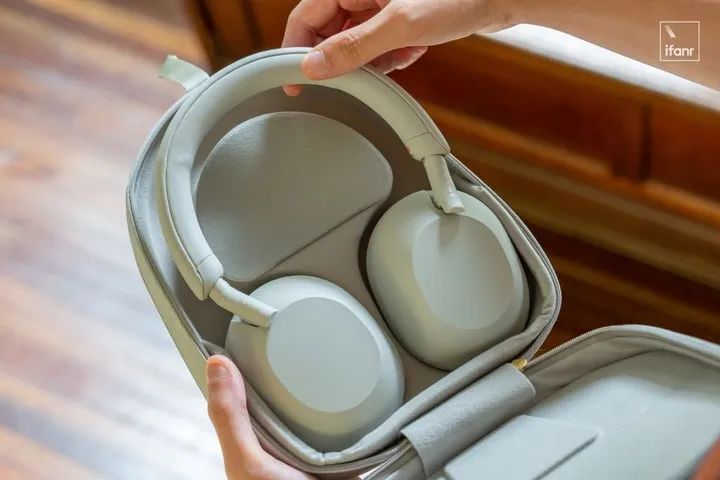 索尼 WH-1000XM5,由于不可折叠收纳,耳机包的体积也增加了。