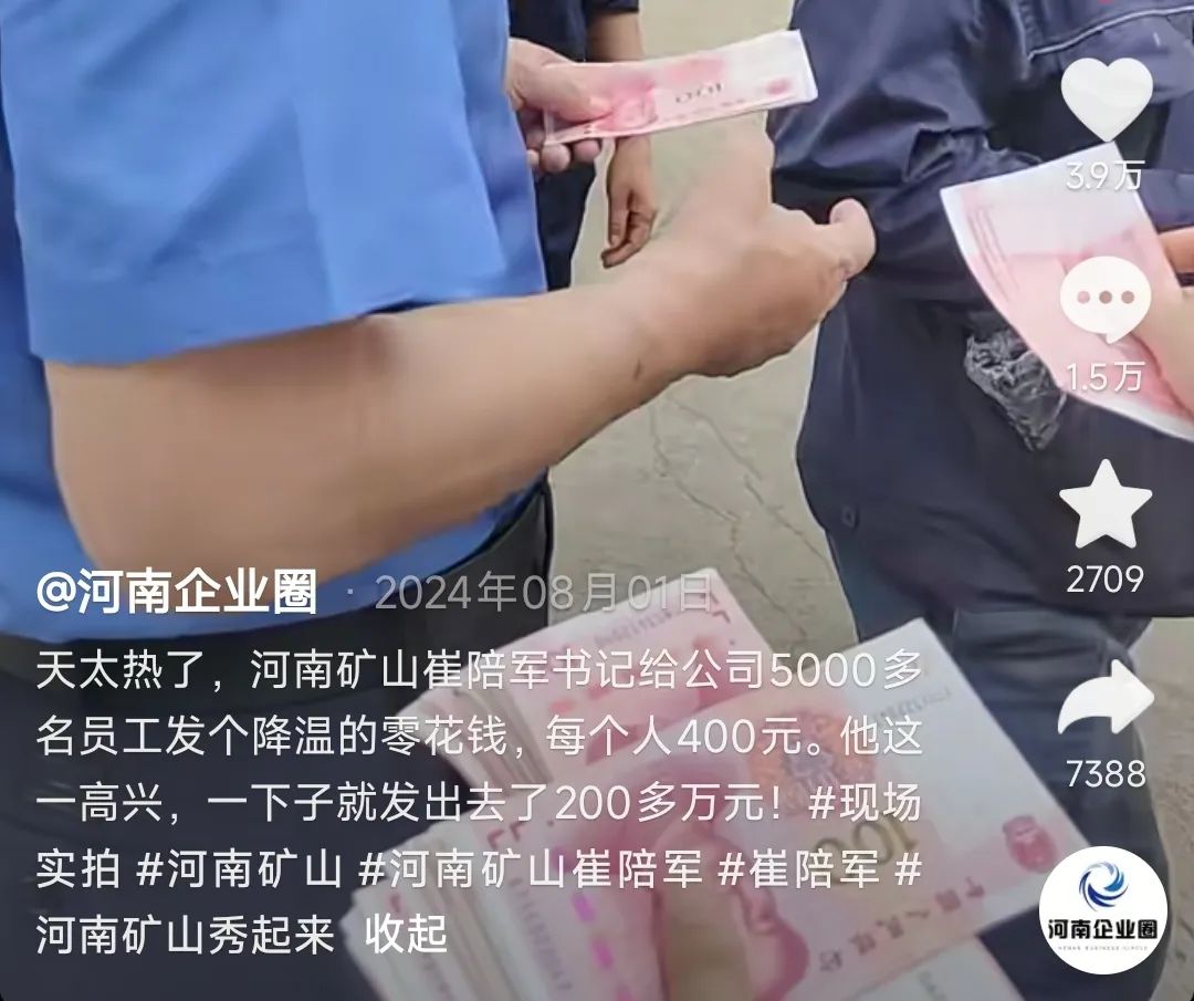 有一天,老崔突然宣布要向全体员工发送信息。400元的红包。这只是因为他出差回来后觉得天气太热,决定对下属进行奖励。