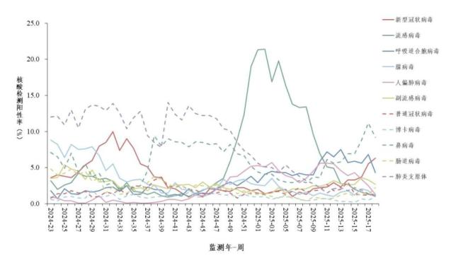 在严重的急性呼吸道感染病例中,新冠肺炎的阳性率也从3.3%上升到6.3%,同样持续多周居首。