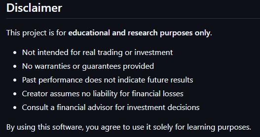 在项目简介中,作者还强调,本项目仅适用于教育或研究用途,不适用于实际交易和投资。