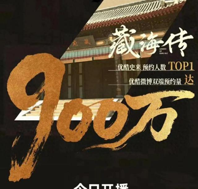 经过几轮预热,备受关注的古装权谋剧《藏海传》如期开播。播出前,优酷的预约人数突破了惊人的局面。 900 万,这么高的预约量在优酷绝对是独一无二的。而且没有播出的时候,站内的热值也突破了。 6800,是真牛。